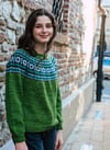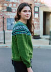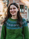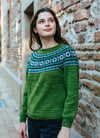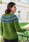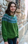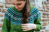 Keila is a top-down seamless yoke sweater that is knit in the round. There is a ribbed neckline followed by short rows at the back of the neck for a comfortable fit. The yoke features stranded colourwork that has been inspired by Estonian motifs and includes texture with rows of purl stitches. There is optional waist and hip shaping to add feminine shape, and the hem and wrist cuffs are finished off with ribbing.