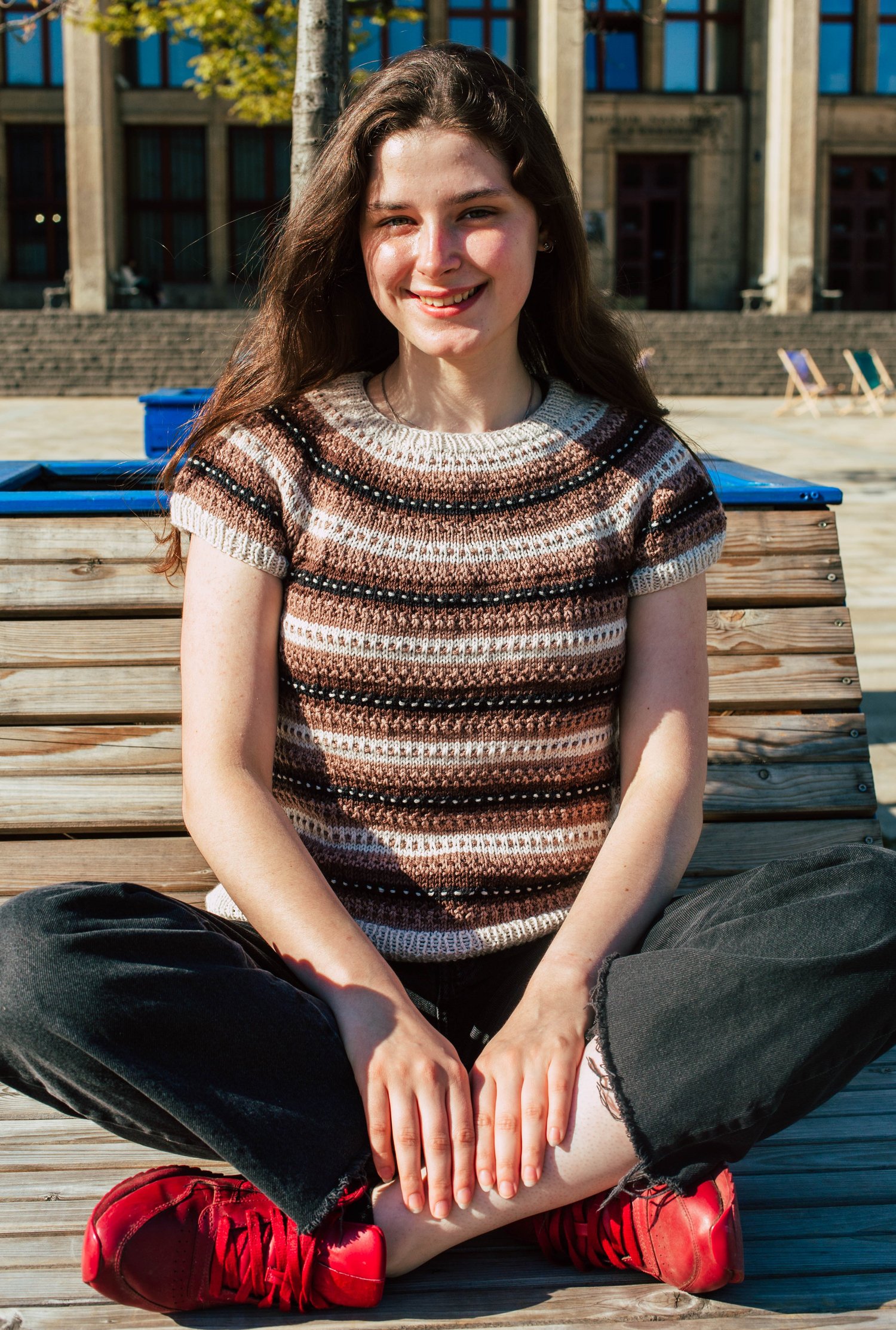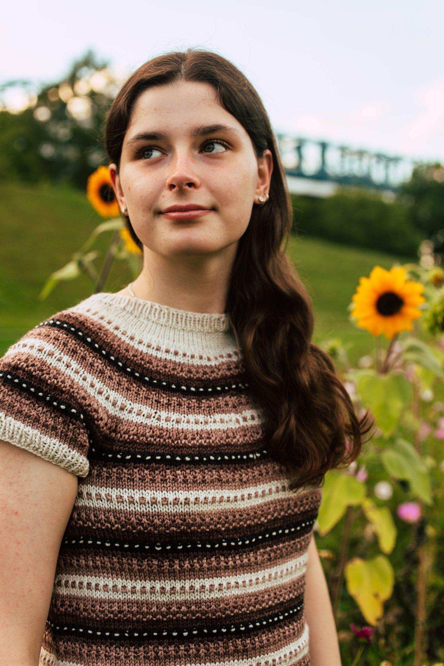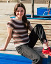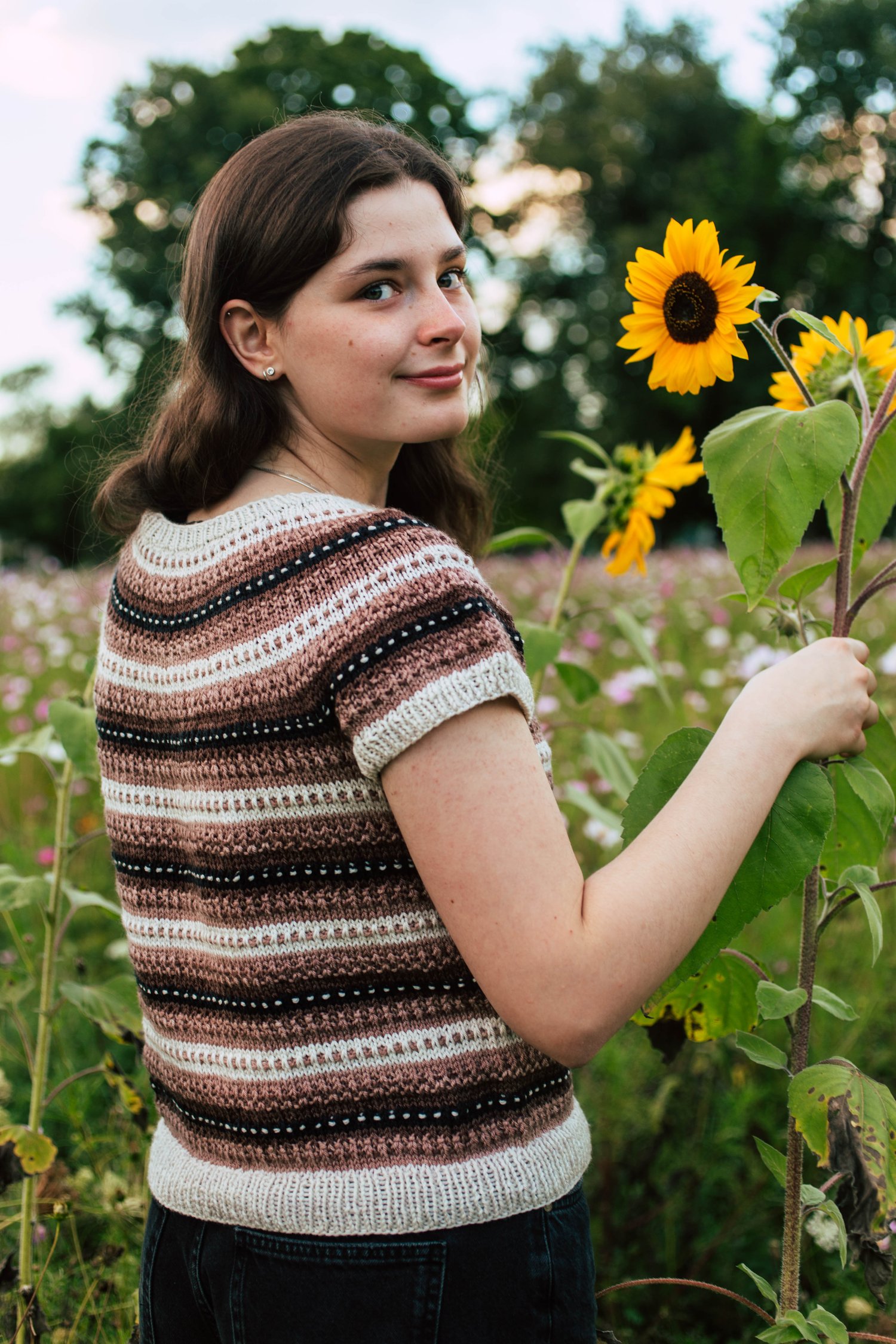 Lithriad is a top-down seamless yoke sweater that is knit in the round. There is a ribbed neckline followed by short rows at the back of the neck for a comfortable fit. There is a repeated slip stitch motif all the way down the sweater. There is never more than one colour used in each round, so knitting Lithriad is simple to work, but creates effective textured colorwork. This pattern includes alternatives for short sleeves, long sleeves, as well as a steeked cardigan.
