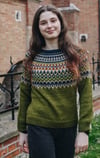 100% Superwash Merino Wool; 400 yd/3.9 oz (365m/110g) skeins: 2 (2, 3, 3, 3) (3, 3, 3, 3) skeins in main color, shown in Moss, and 1 (1, 1, 1, 1) (1, 1, 1, 1) skein in each of CC1 and CC2, shown in Eternity and Dunes.